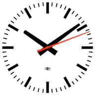 The original design manual did not show a double-arrow logo on the clock face. However, most clocks spotted in the wild did.