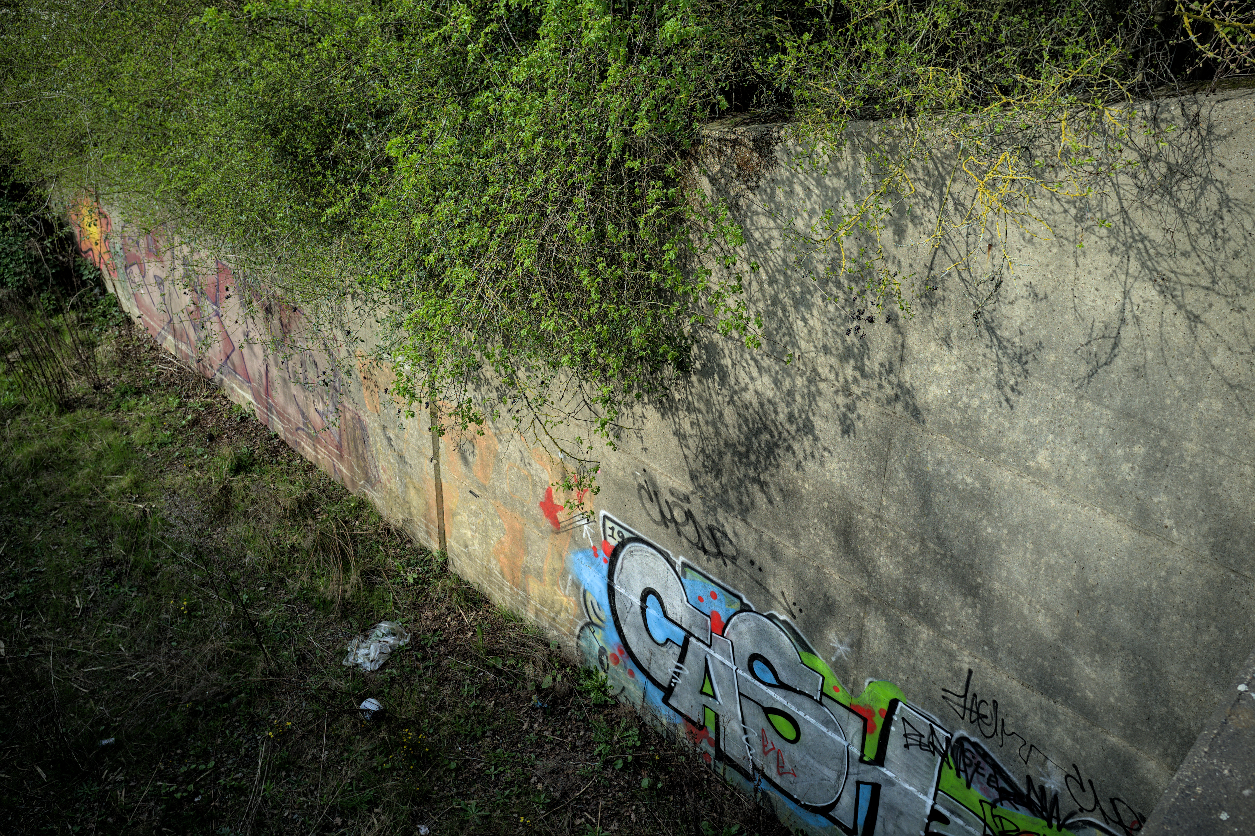One could complain about the graffiti here. I am less inclined to do that. It doesn’t make the giant concrete walls any more ugly, as graffiti would if targeted at Victorian ironwork and engineering bricks. Perhaps we will see it as unthinkable in a hundred years when (maybe if) we look back on remnants of the 1960s with the same reverence as we do the remnants of the Victorian era. For now I’m more inclined to see it as part of the bridge’s life, and as just another use that it has been put to.