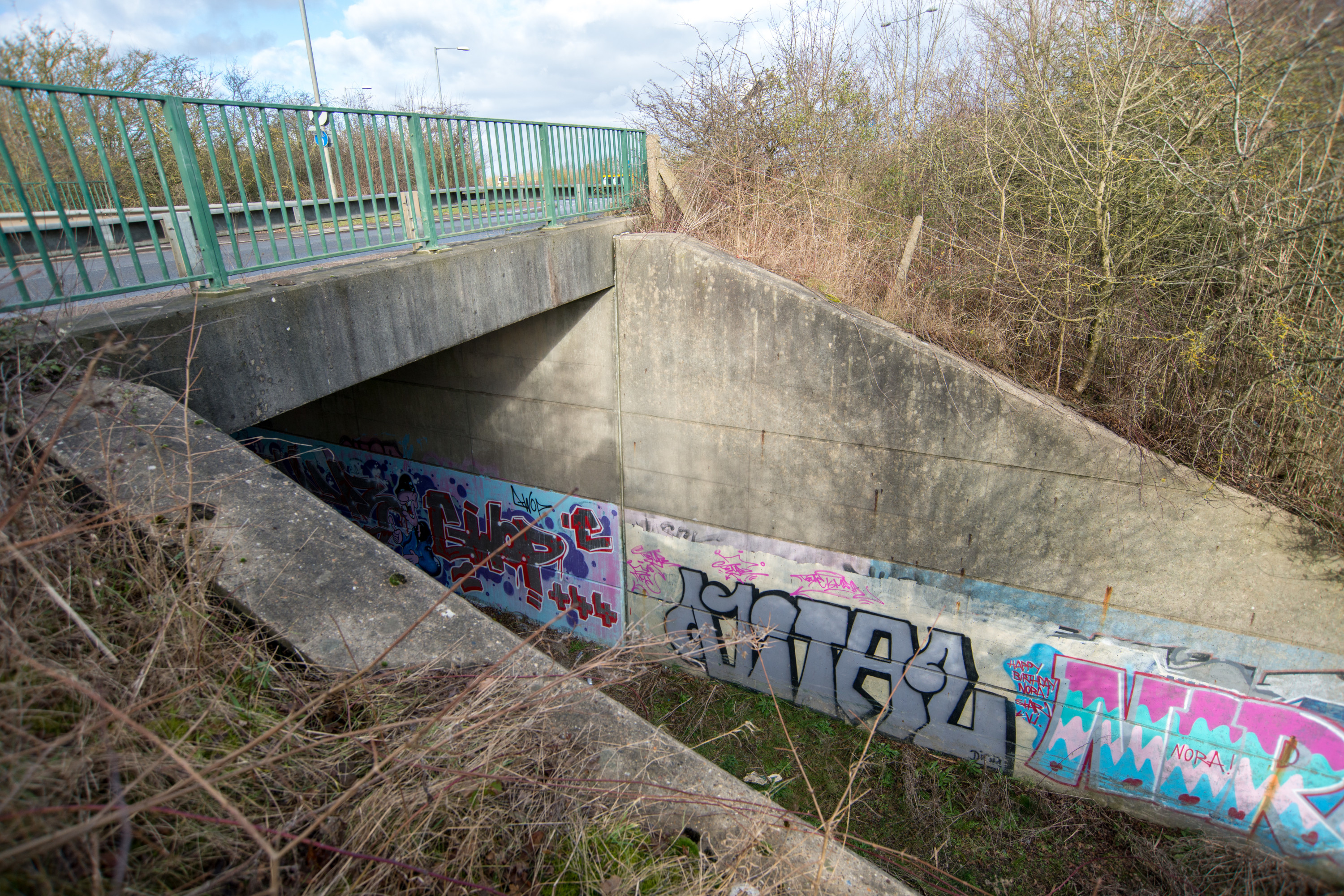 If you have ever walked from the Saddlebow Roundabout on the A47 towards the Saddlebow Industrial Estate on the edge of King’s Lynn, you may have noticed this curious little concrete bridge over nothing.