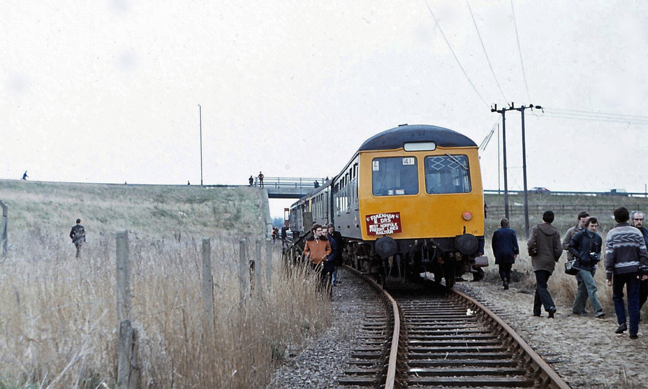 For an even older view, you can see this rare photo, from the outstanding East Anglian Railway Archive site, of a diesel multiple unit visiting this location on a rail tour in 1980 (you can see the concrete bridge in the background):