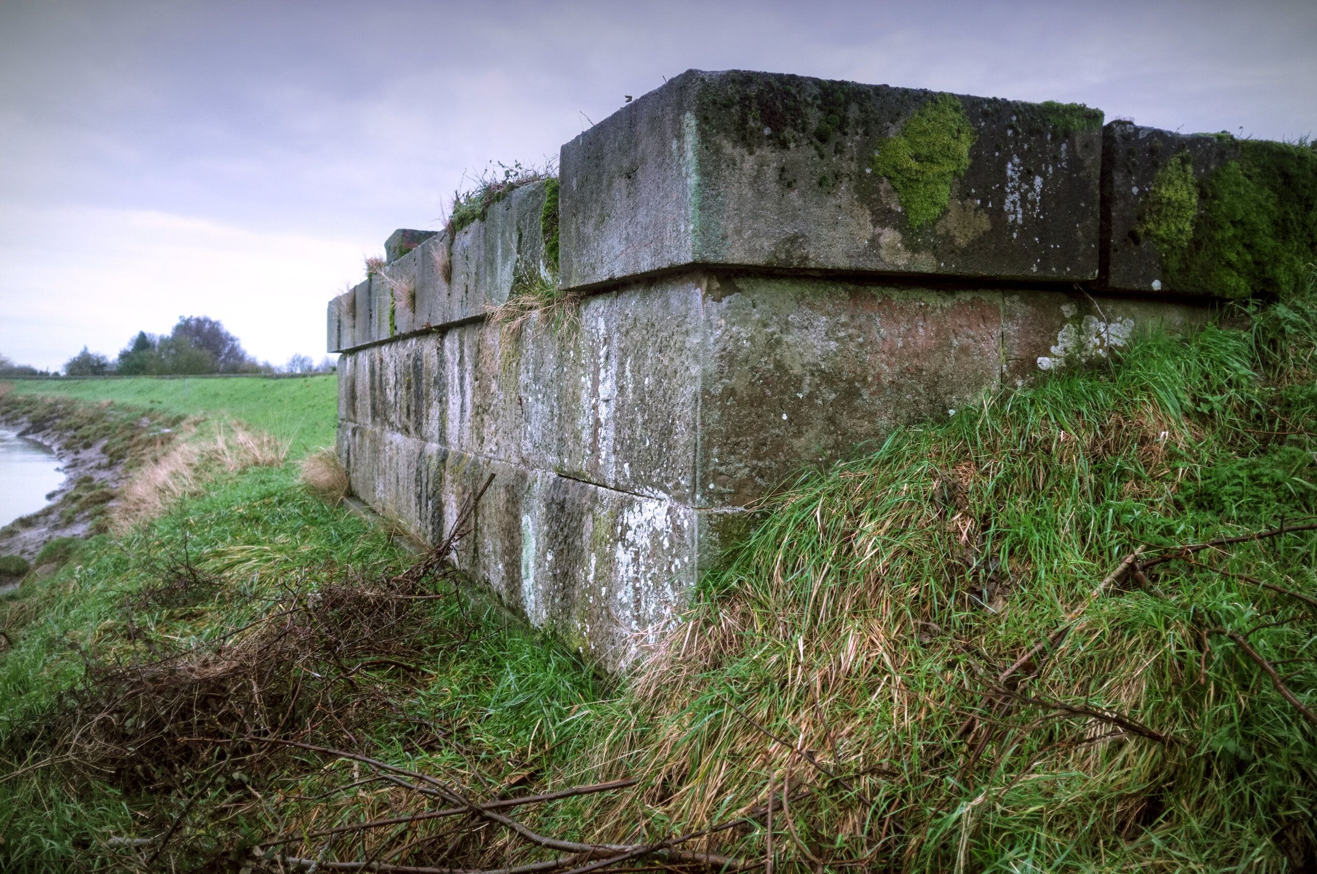 And on the banks of the Ouse, we will find this concrete (or maybe stone) bridge abutment.