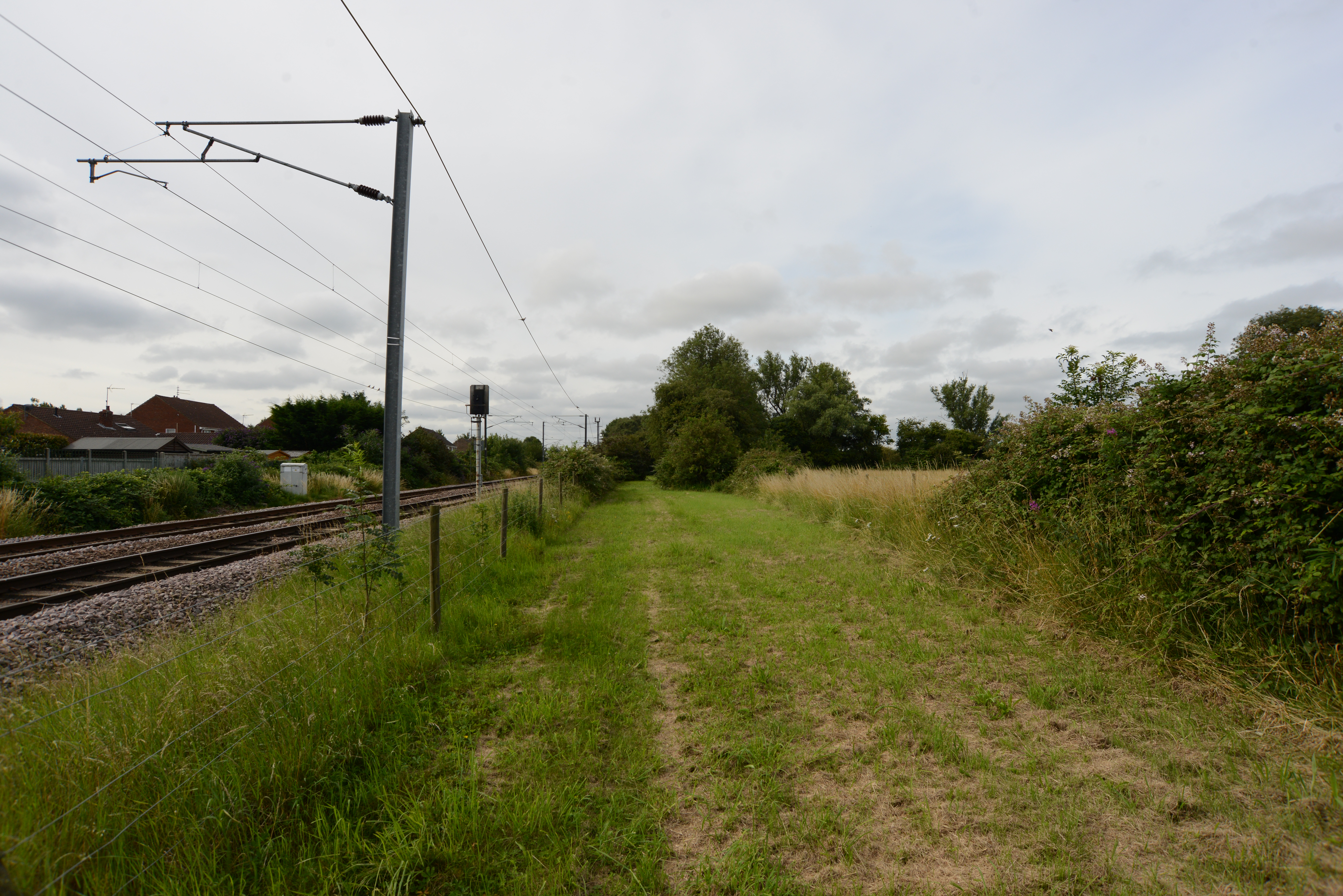 Looking out the bottom (southern) end of the cheaper car park, you will find this suspiciously straight and clear track. You could be forgiven for thinking that this was the path of the former line to Wisbech.