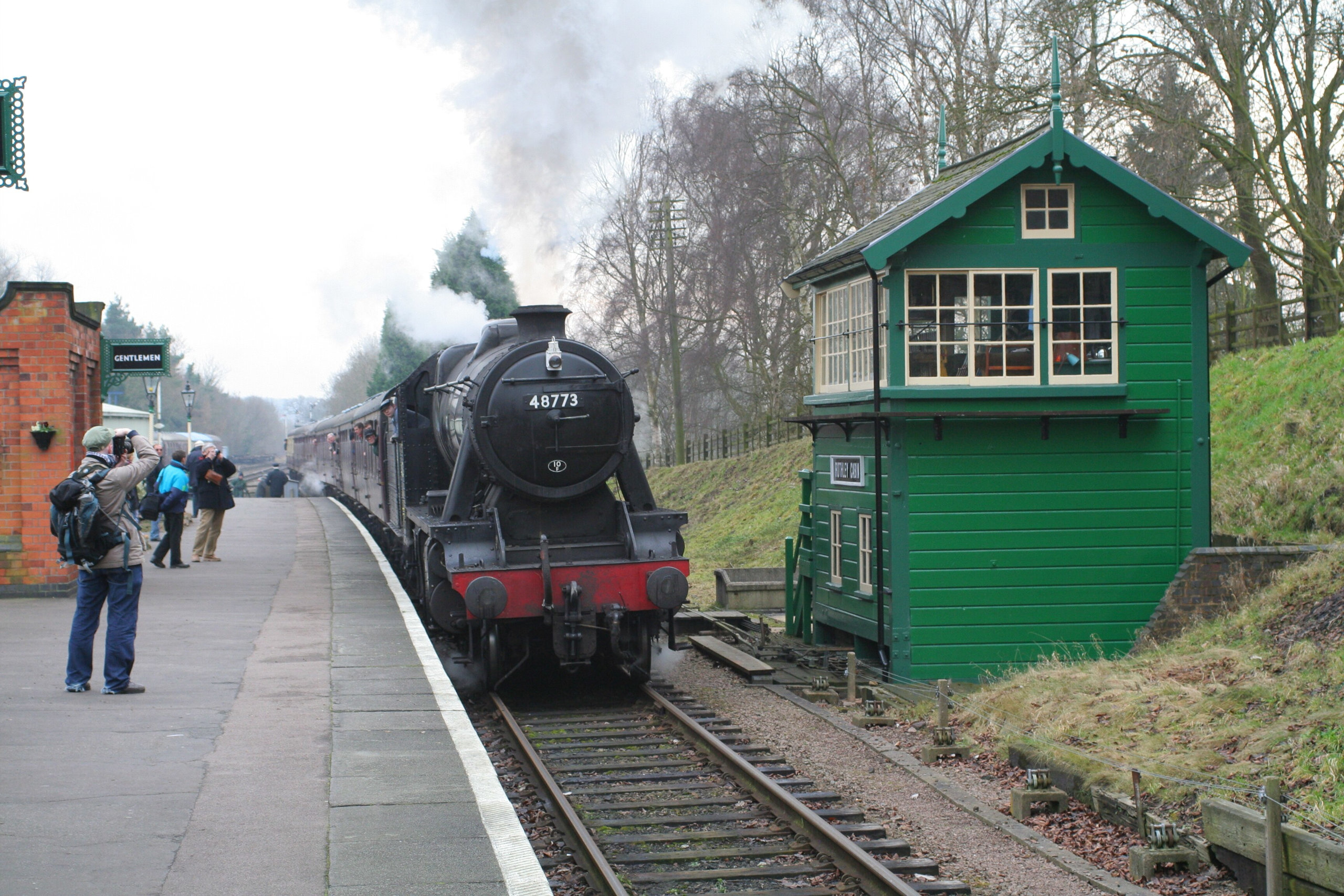At its current location, this signal box dates from 1927. But this is actually a Great Central Railway type 5 signal box from the late 1890s, relocated here in the LNER era.11 Compare Magdalen Road with, e.g., Rothley Cabin on the preserved Great Central Railway in Leicestershire, in the picture below. The design similarities are clear, especially the small square window just below the apex of the roof (blanked off at Magdalen Road, but you can clearly see where it used to be).